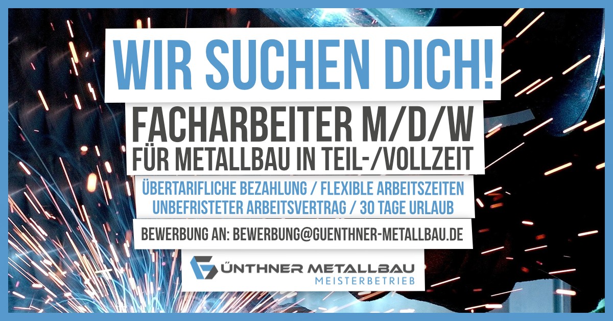 Stephan Günthner steht mit seinem Unternehmen für Qualität, Zuverlässigkeit und Präzision. Um Ihnen das bestmögliche Ergebnis für Ihre Investition zu garantieren, arbeiten wir mit hochwertigsten Materialien wie Stahl, Aluminium und Edelstahl. Egal ob es sich um ein neues Treppengeländer, eine Treppe oder eine Terrassenüberdachung handelt – sprechen Sie uns an und wir entwerfen für Sie die optimale Lösung mit der nötigen Sicherheit. Sie suchen einen Metallbauer in Ihrer Nähe? Dann sind Sie hier genau richtig!